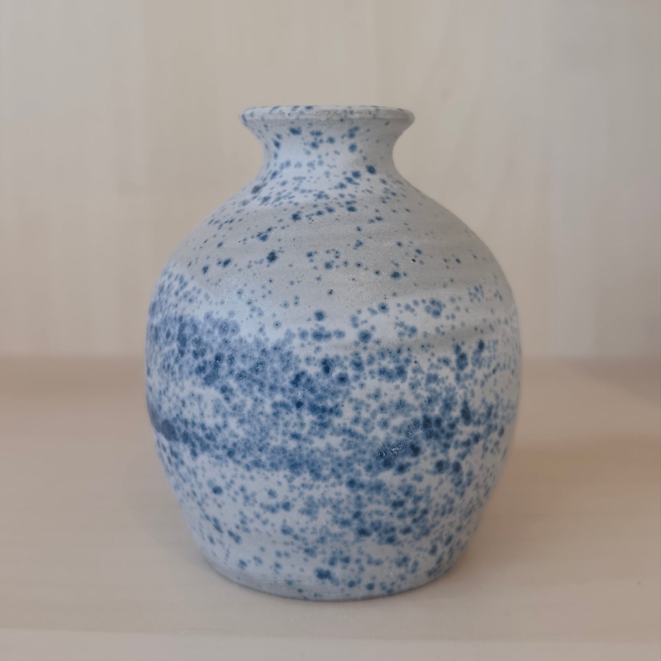 Wheel thrown, hand glazed blue speckle vase
