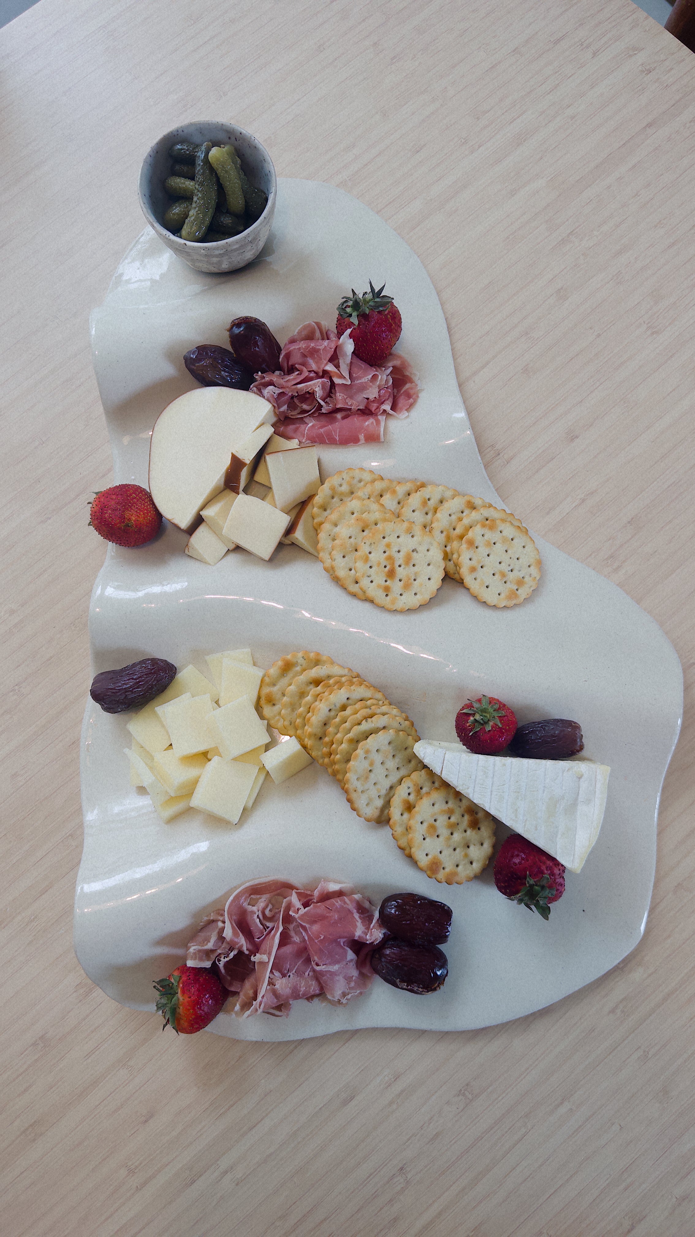 In this class each student will get to create a snack plate/charcuterie board by hand building using a 15in long clay slab. You will have the freedom to get as creative as you would like and add texture or simple customizations to make it your own and select your color glaze from our glaze library.